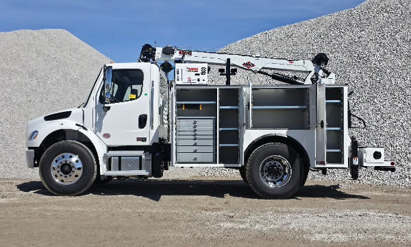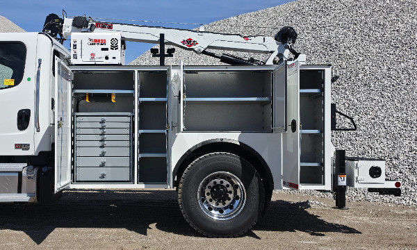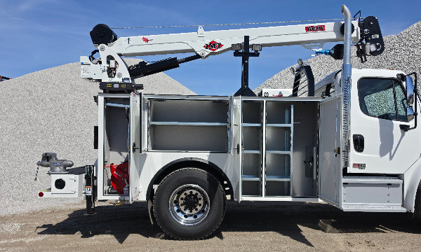 Freightliner Service Truck. 11' Dominator 3 Service Body. 10000# IMT Crane. BA440 Air Compressor.