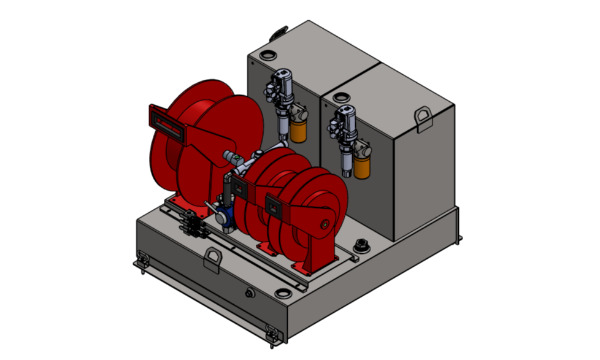 New product: (2) 35 Gal steel tanks. Graco air pumps, 50' Reelcraft reels, Graco rigid digital metered nozzles.