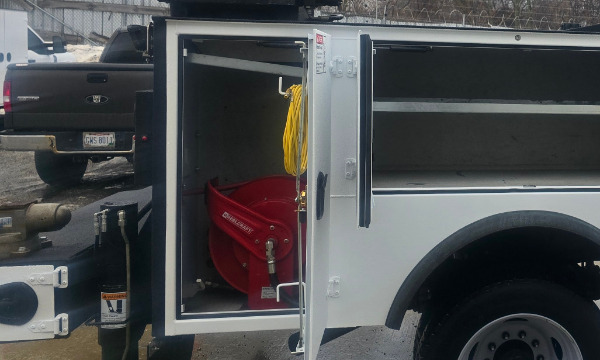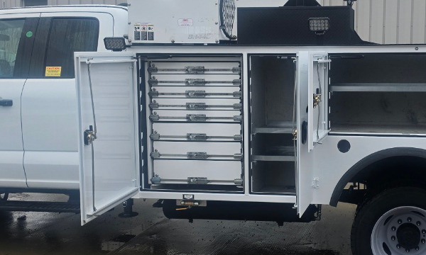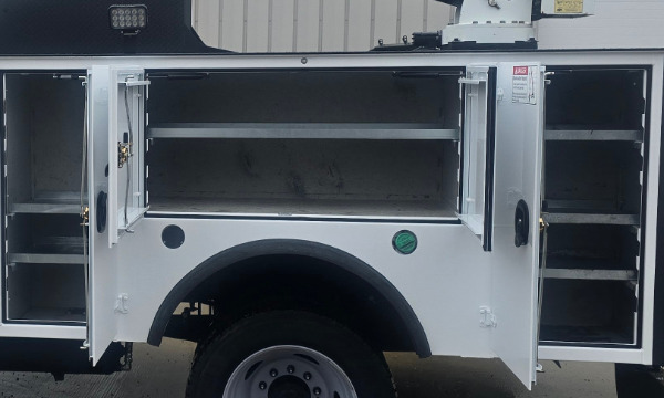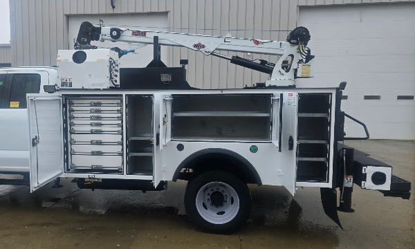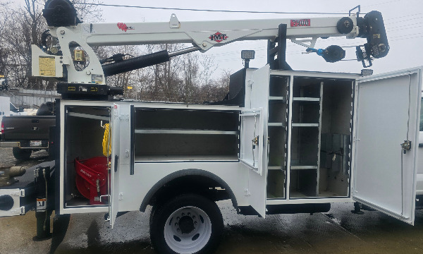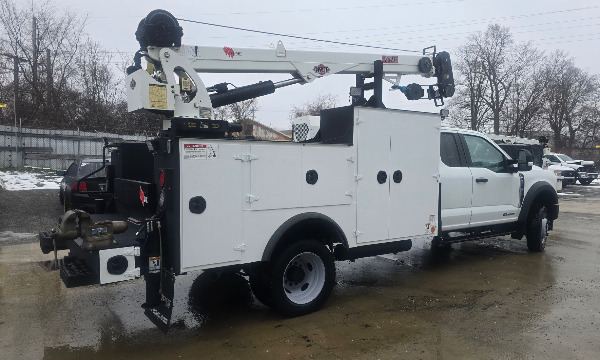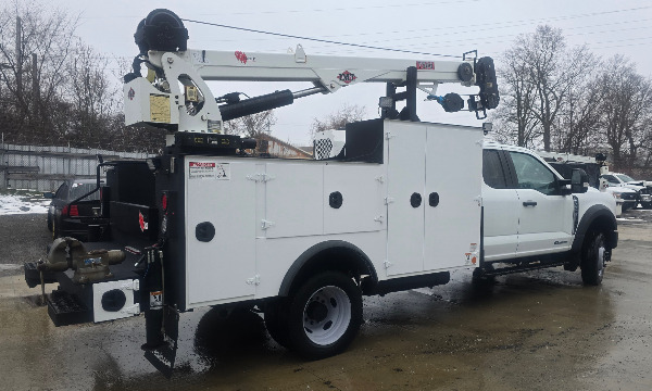NEW Ford F550 extended cab service truck. Used 11' Dominator I service body. IMT 7500 telescopic crane. BA440 air compressor. Exterior body repainted (Sherwin Williams Genesis). Load space, top of side packs, rear of truck new bedliner. New pump & PTO. New high pressure filters off pump (10 micron). New return filter, new oil. All new latches. New body wiring harness & all new lights. New air tanks & air regulator. Compressor serviced. New wire rope. New cord reel. New boom support. Recent crane inspection passed. Unit can be rented.